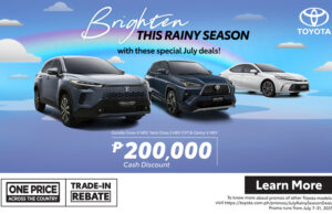 Toyota Motor Philippines (TMP) is turning the rainy season into a reason to celebrate with exciting promos and discounts on select models from July 7...