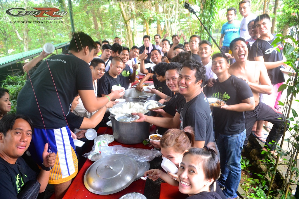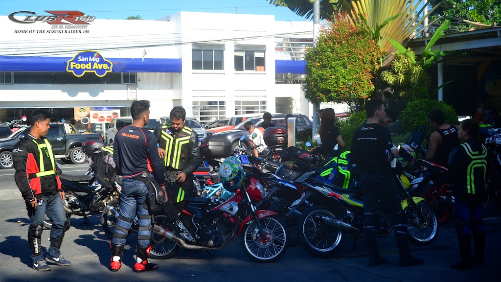 DSC_0039 DSC_0041DSC_0073 DSC_0074 DSC_0079Midnight of September 18 when they started to have a regular ride briefing that includes discussing the do’s and dont’s, signing of riding waiver and seeking guidance thru a powerful prayer. It was around 1am when they took off their Tambayan at Phoenix Gas station near SM MOA. First hook up was in Bulacan to fetch the Riders from Bulacan chapter headed by their President Alex Neblasca and the 2nd was Mcdo San Fernando Pampanga led by President Jennifer Panlaqui. Their full tank from tambayan was followed at the meet up place in San Fernando Pampanga. They stayed for a couple of minutes waiting for some riders assisted by the ride marshalls who got some tire issue. When they got completed, they proceed to the next hook up at SM Tarlac to fetch Aspirants from Pangasinan together with Marshall Jan De Manio. Gas tank was filled in Tarlac prior to their last gas up in Rosario. The Riders from Club R150 Baguio spearheaded the group passing the high speed twisties of Marcos Highway. A minutes of photo ops before they proceed to their accomodation in Pine Breeze Hotel. The tired riders were welcomed by Pinikpikan, adobo and pansit served hot by the main event coordinators Baguio. The itinerary was to push hard after lunch to Highest Point Atok Benguet but due to uncontrollable weather condition. Consultant Ian Mediavilla decided to cancel and move it to the other day. Some of the riders choose to have City tour, some took the opportunity to recharge but some don’t waste time sharing moments together with bottles of Red Label, Tequilla and the most ever known Empi. The main sponsor of the event Baguio Chapter served a delicious and crispy lechon for an early dinner before the whole pack of happy riders visit the Club R150 Baguio chapter tambayan at Caltex, PNR. The tambay night was used to discuss club history, core values, meet and greet and the most awaited raffle. Motorcycle parts and items sponsored by Overdose and Full faced helmet by the NCR chapter. After a couple of hours of exchanging laughters some of the riders went to visit the most popular night market, some proceed to club hopping and some went back to home base to prepare themselves to another uphill climb challenge.