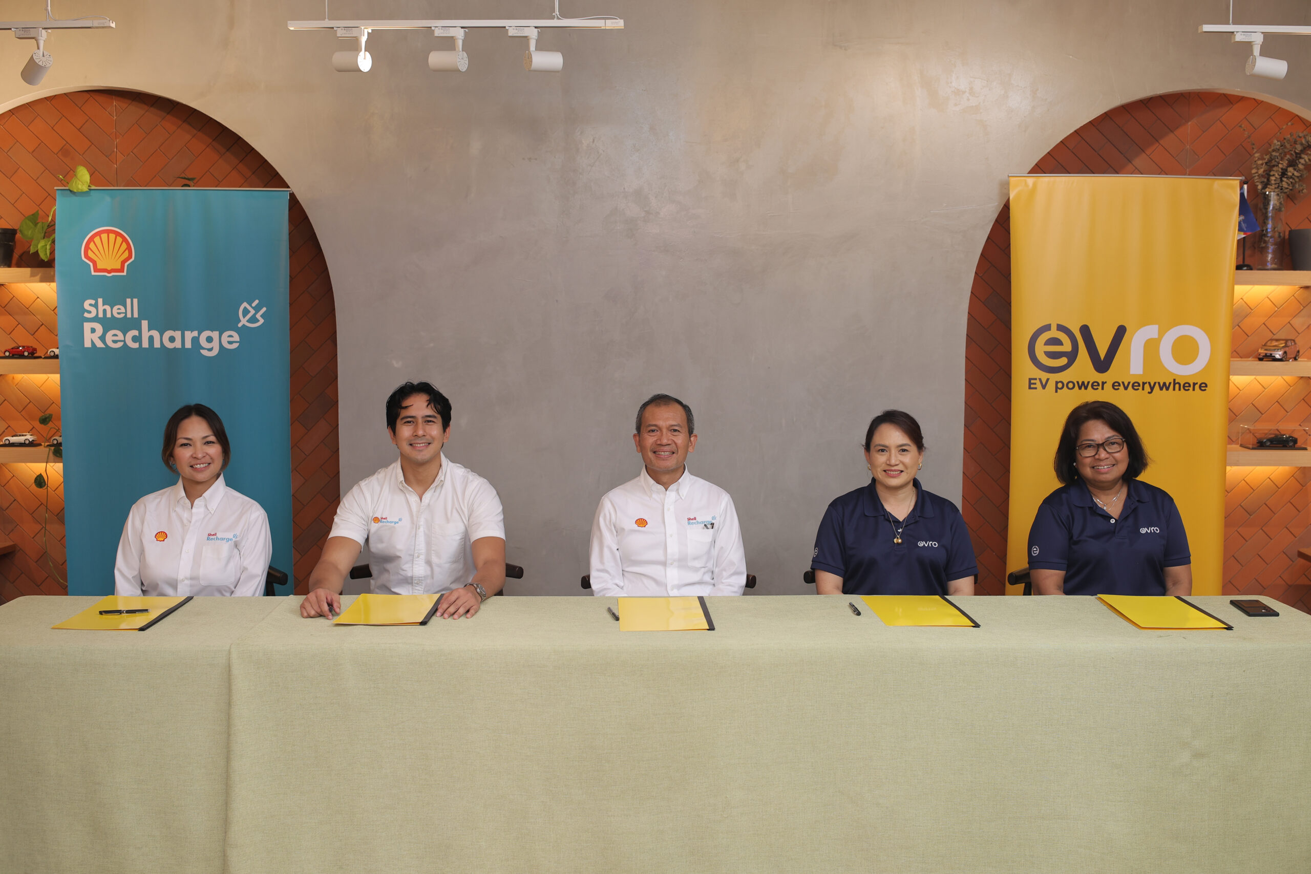Maite Ituralde, Head of Network Delivery for Mobility; Mike Ramolete, General Manager and Vice President for Mobility; and Jolo Valdez, Head of Non-Fuel Retail and E-Mobility for Mobility. Representing Evro Mobility Solutions, Inc. were Carla Buencamino, President, and Sharyn Jacobsen, Board of Director.