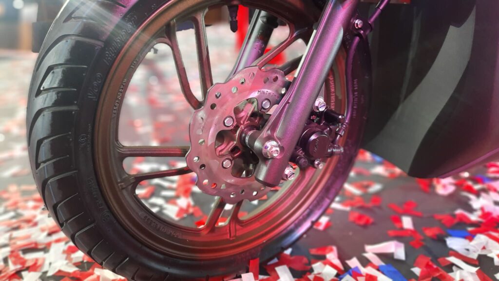 Safety and control remain central to the Click125 experience. The scooter is equipped with a Combined Brake System (CBS) that balances braking force between the front and rear wheels for improved stability during sudden stops. A front wavy disc brake further enhances stopping power and heat dissipation, providing riders with added confidence in busy city traffic.