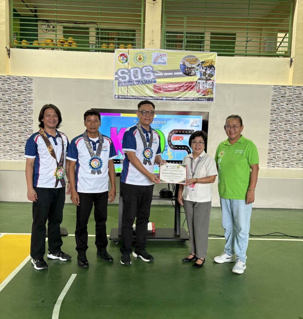 Honda Philippines Inc. (HPI) has reaffirmed its commitment to fostering a culture of road safety among young learners through the Honda Safety Driving Center’s (HSDC) Kids and Students on Safety program in partnership with Don Bosco Elementary and National High School Parañaque. Present during the activity were HSDC Department Manager Mr. Raymund Cristobal, alongside HSDC managers and supervisors, together with school officials led by Principal Mrs. Agnes A. Pelovello. A certificate of appreciation was awarded to HPI in recognition of its continuous efforts and support in road safety education.