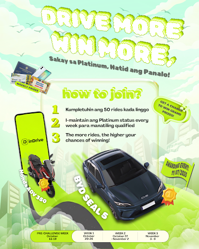 inDrive has officially rolled out its Driver Giveaway Campaign across Metro Manila, Bacolod, and Cebu, recognizing partner drivers who consistently achieve and maintain Platinum status. The initiative aims to celebrate reliability, professionalism, and commitment among drivers who provide exceptional ride-hailing services in key cities across the Philippines.