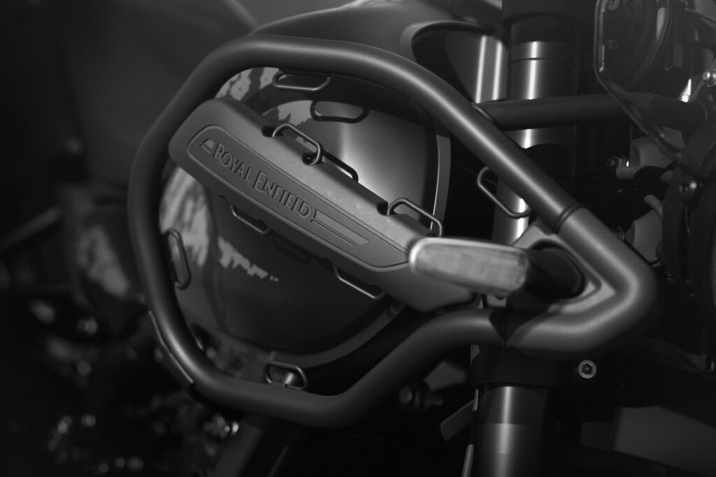 Powering the Mana Black is the Sherpa 450 engine, a liquid-cooled, single-cylinder platform equipped with ride-by-wire technology for precise throttle control and versatile dual-purpose performance. A defining highlight of this edition is its exclusive factory-fitted adventure configuration, straight from Royal Enfield’s assembly line. Purpose-built accessories such as Black Rally handguards, a Black Rally seat for enhanced grip and long-distance comfort, a Rally mudguard, and wire-spoked tubeless wheels ensure the motorcycle is fully adventure-ready from day one.