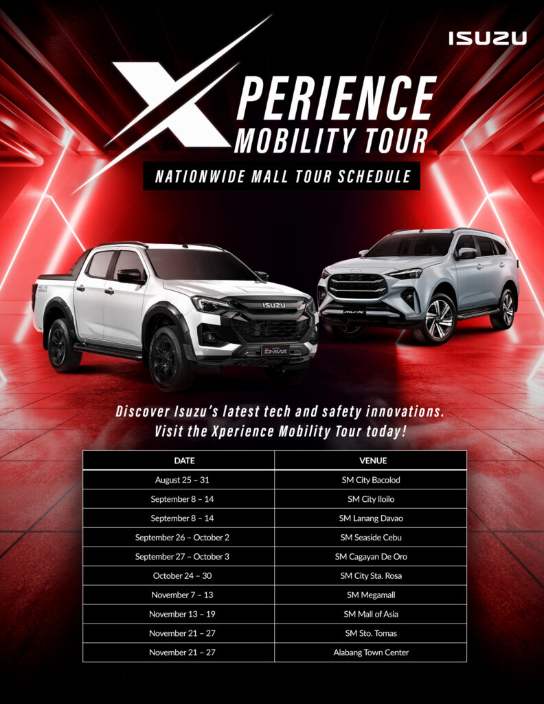 Isuzu Philippines Corporation (IPC) is gearing up to bring its trusted vehicles closer to Filipino families and businesses through the Isuzu Xperience Mobility Tour, a nationwide mall event showcasing the brand’s latest Light Commercial Vehicles (LCVs)—the Isuzu D-MAX and Isuzu mu-X. The tour will officially kick off at SM City Bacolod from August 25–31, 2025, before heading to major cities across the country, giving customers the opportunity to experience firsthand the innovations and reliability that define Isuzu.