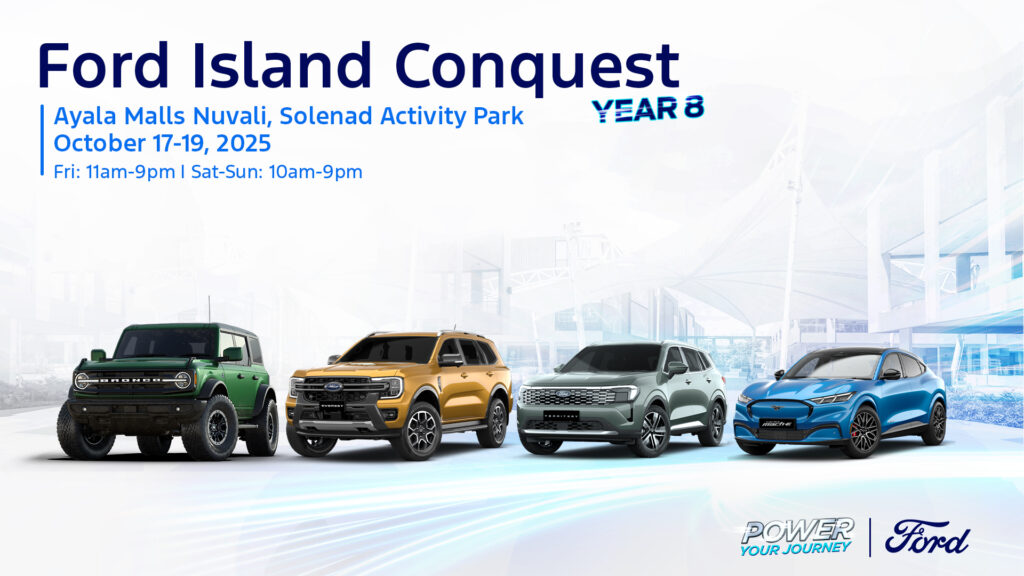 Ford Philippines is bringing its much-anticipated Ford Island Conquest (FIC) test drive roadshow to Ayala Malls Solenad in Nuvali, Sta. Rosa, Laguna on October 17–19, 2025. Now on its eighth year, the FIC continues to offer customers a fun and interactive way to experience Ford’s latest models, including the All-New Mustang Mach-E and the New Everest Wildtrak, alongside other fan favorites from the brand’s full line-up.