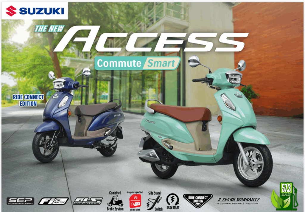 Suzuki Philippines proudly announces the arrival of the New Suzuki Access, marking a bold step forward in the country’s growing 125cc scooter segment. Available in two variants—the Access and the Access Ride Connect Edition—this latest model is set to transform daily commuting with its blend of style, comfort, and performance. Already Suzuki’s top-selling scooter worldwide, the New Access is designed to meet the needs of Filipino riders navigating busy city streets, offering a perfect balance of efficiency, innovation, and elegance.