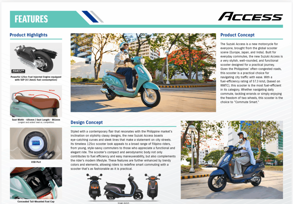 A true reflection of Suzuki’s global promise to be “By Your Side,” the New Suzuki Access goes beyond transportation—it redefines how Filipinos Commute Smart every day.
