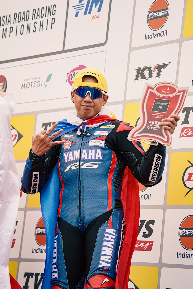 In the intensely competitive SS600 class, McKinley Kyle Paz reminded everyone why he’s called “The Wonderboy.” On Saturday’s Race 1, he battled in the lead group and crossed the line in fifth. But it was Sunday’s Race 2 that truly showcased his grit—Paz held his ground in a fierce final-lap duel to clinch a podium finish in third place. His efforts not only brought personal redemption but also helped the Hong Leong Yamaha Racing Team maintain their lead in the Team Overall Championship standings.